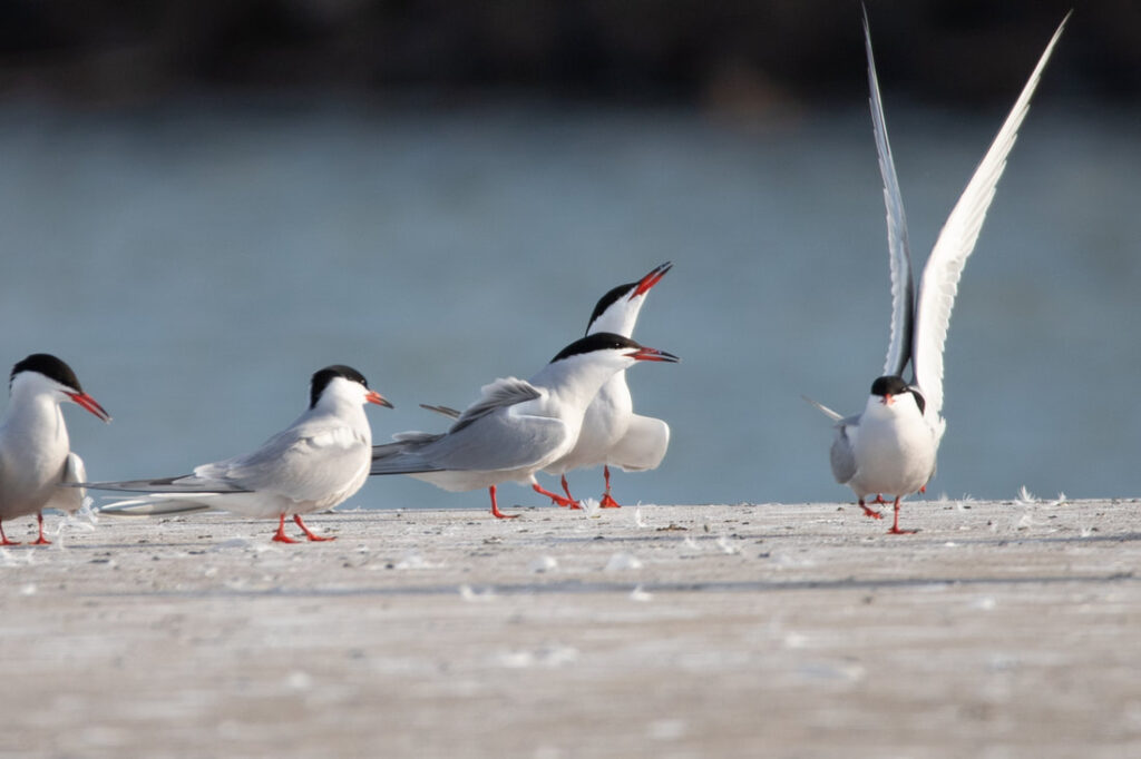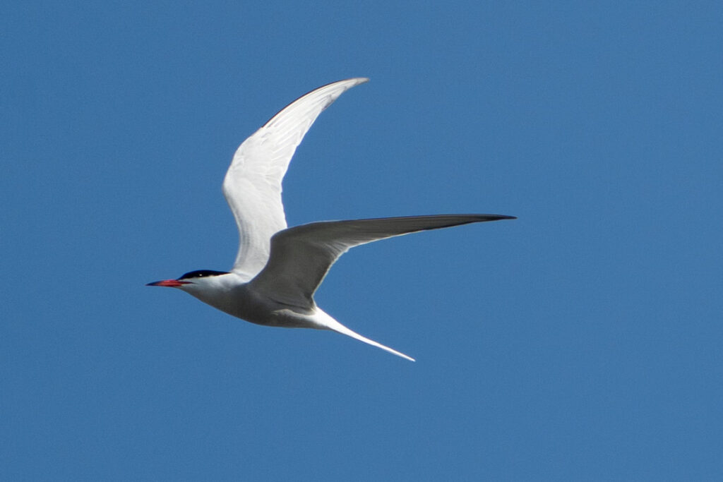 Common Terns are the most widespread tern species in North America. They can be seen throughout the summer near large bodies of water hunting for fish with graceful and acrobatic diving behavior. Common Terns nest in colonies that can be made up of thousands of birds. Their nest is a simple scrape in sand or gravel near water where they can easily forage for small fish. Despite what their name suggests, Common Terns are a threatened species in New York State. Habitat loss due to development, rising water levels, and competition with larger Ring-billed Gulls are the biggest factors in their decline across the Great Lakes.