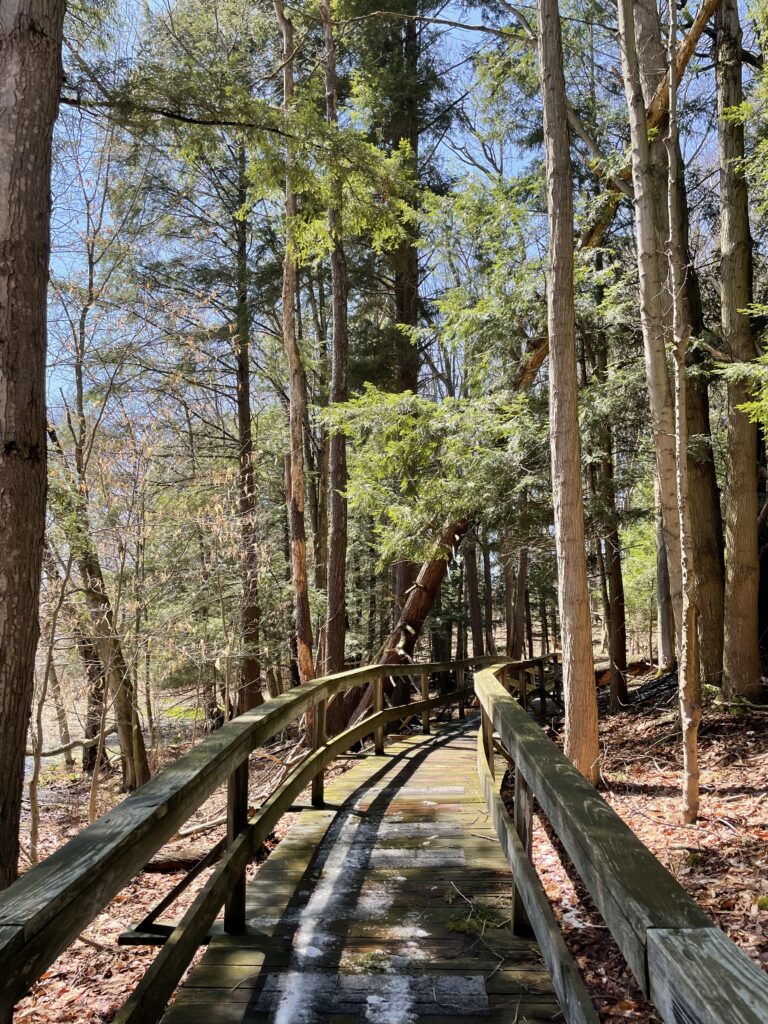 Easier family trails include Trillium Trail and Chipmunk Run (both Storybook Trails), Beaver Pond Trail, Old Homestead Trail, and Jenny Glen Boardwalk.